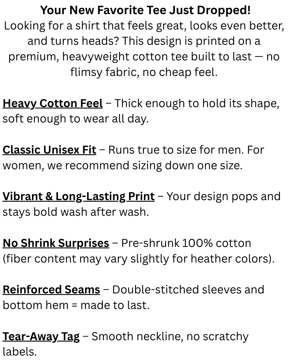 Premium Feel - 5.3 oz heavy cotton gives it a substantial quality feel without being too thick.