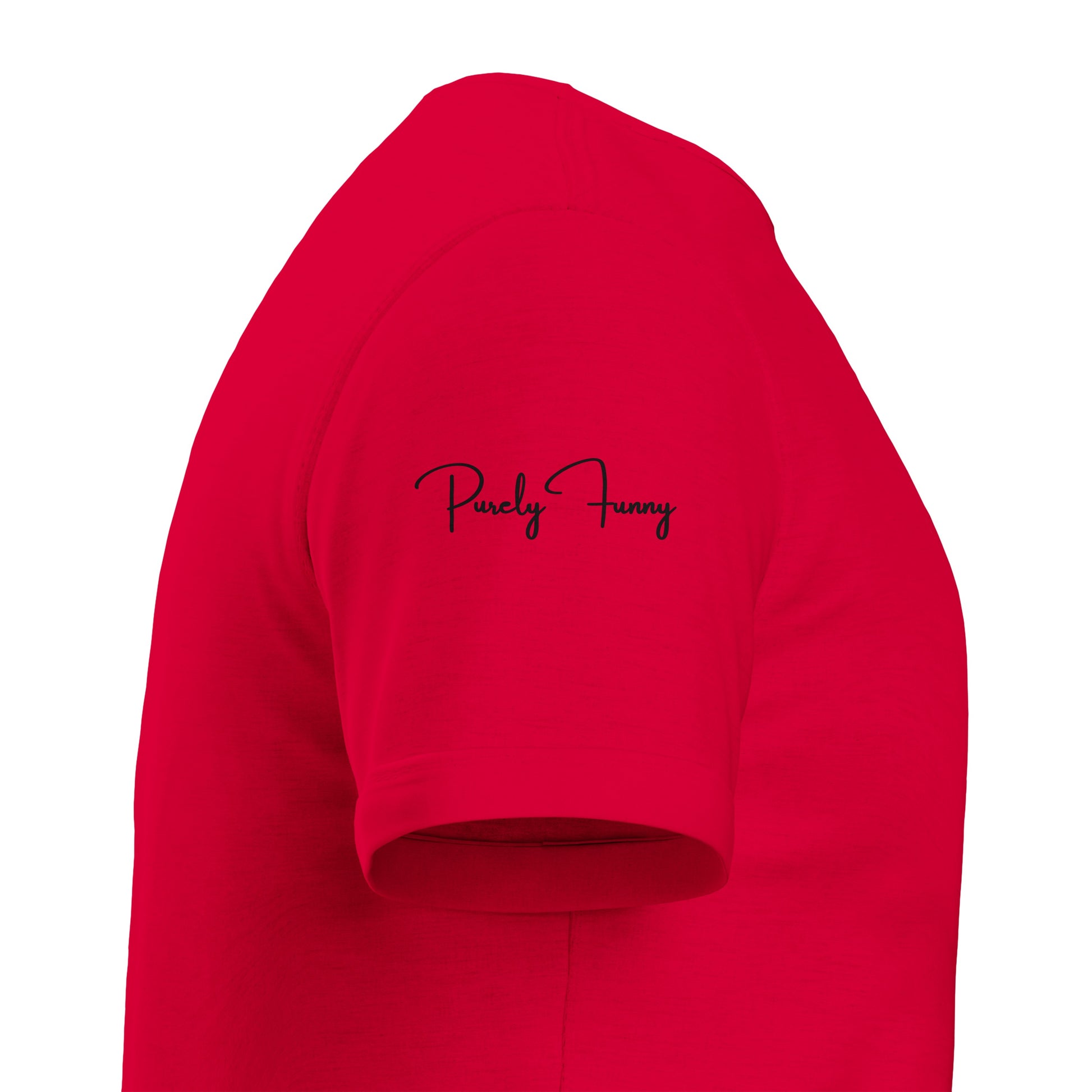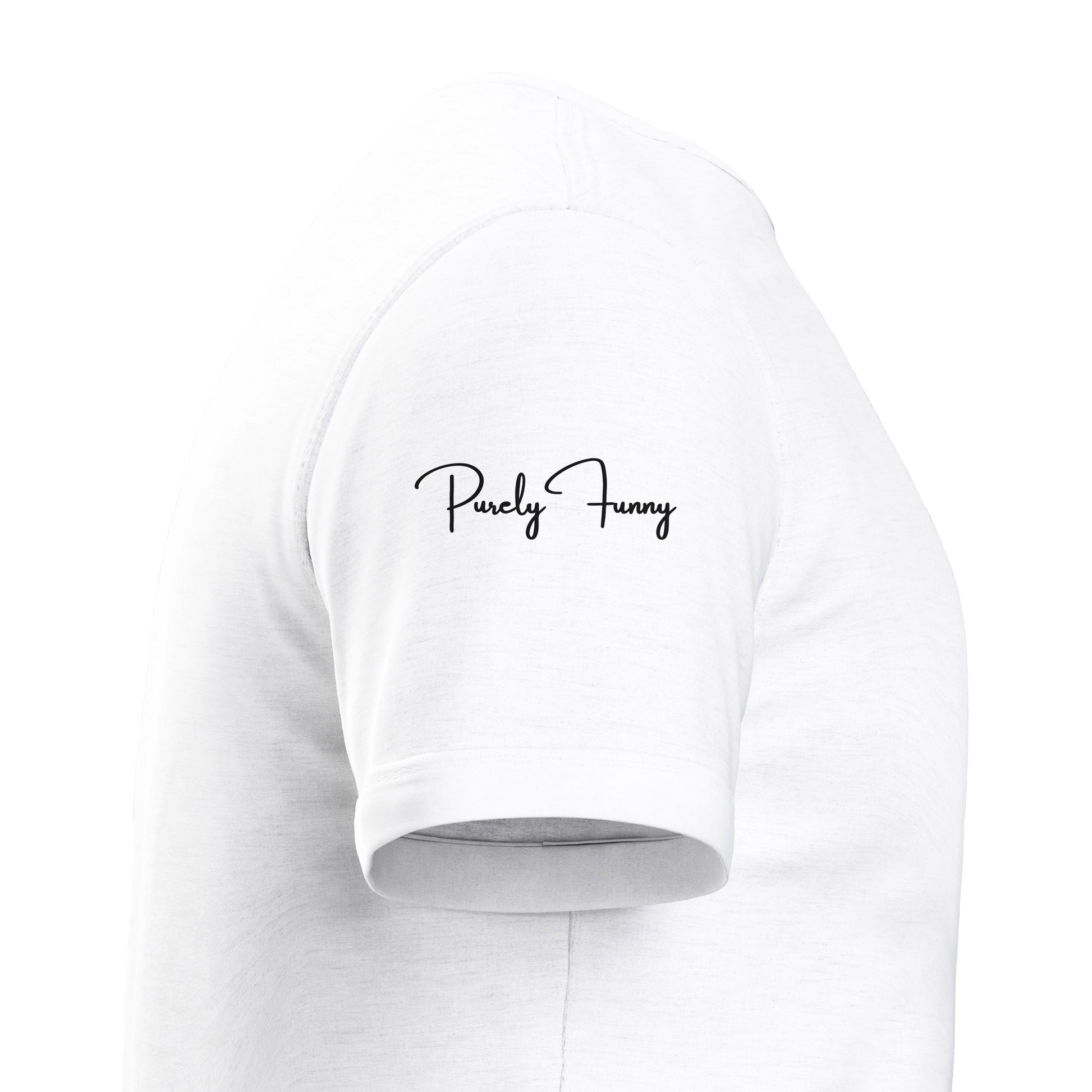 Sleeve Detail - Optional "Purely Funny" signature on the right sleeve.